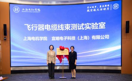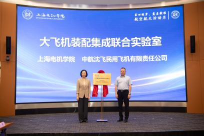 在实验室揭牌环节,龚思怡院长分别与中航沈飞民用飞机有限公司副总经理孟凡力、上海航菱航空科技发展有限公司董事长吕嗣孝、宜略电子科技(上海)有限公司执行董事庄海悦共同为“大飞机装配集成联合实验室”“航空航天精密制造联合实验室”“飞行器电缆线束测试实验室”揭牌,标志着学校在航空航天科研平台建设上迈出新步伐。